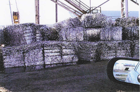 Side Trim Bales: Material is continuous stream of @½’’ wide (12.7mm) material. Gauge 0.0061’’ (0.15mm-0.33mm). Material is baled into cubes approximately 3’x 2’ x 2’. Bales weigh anywhere from 2000 – 3000#. Material is free of tin as coils are trimmed prior to the tinning process. |